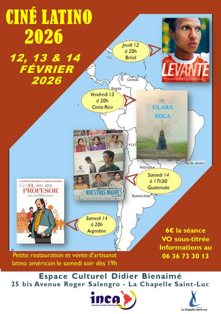 Depuis 2013, cette activité est devenue un rendez-vous régulier entre l’association, ses membres, sympathisants, et les curieux de connaître et découvrir davantage l’Amérique latine à travers cette forme d’art. INCA a choisi d’alterner des films, ou documentaires, sur des sujets sociaux, avec des films plus grand public (mais toujours de qualité !) pour faire découvrir la richesse du cinéma latino.